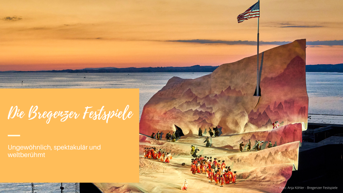 In wenigen Tagen beginnt die neue Saison des Spiels auf dem See der Bregenzer Festspiele. Vom 20. Juli bis 21. August 2022 wird die weltweit größte Seebühne Schauplatz von Puccinis Madame Butterfly. Die Schönheit der natürlichen Kulisse des Bodensees verbunden mit den überdimensionalen Bühnenbildern auf dem See und der einzigartigen Akustik, machen das Festival weltberühmt. Auch wenn die imposante Seebühne das Aushängeschild der Bregenzer Festspiele ist, umfasst das Programm jedoch noch weitere Veranstaltungsorte in Bregenz und bietet von Theater über Ballett bis hin zur Oper Kunst für jeden Geschmack. Spezielle Veranstaltungen sprechen direkt Kinder & Jugendliche an und eröffnen ihnen so einen frühen Zugang zur Welt der Musik.